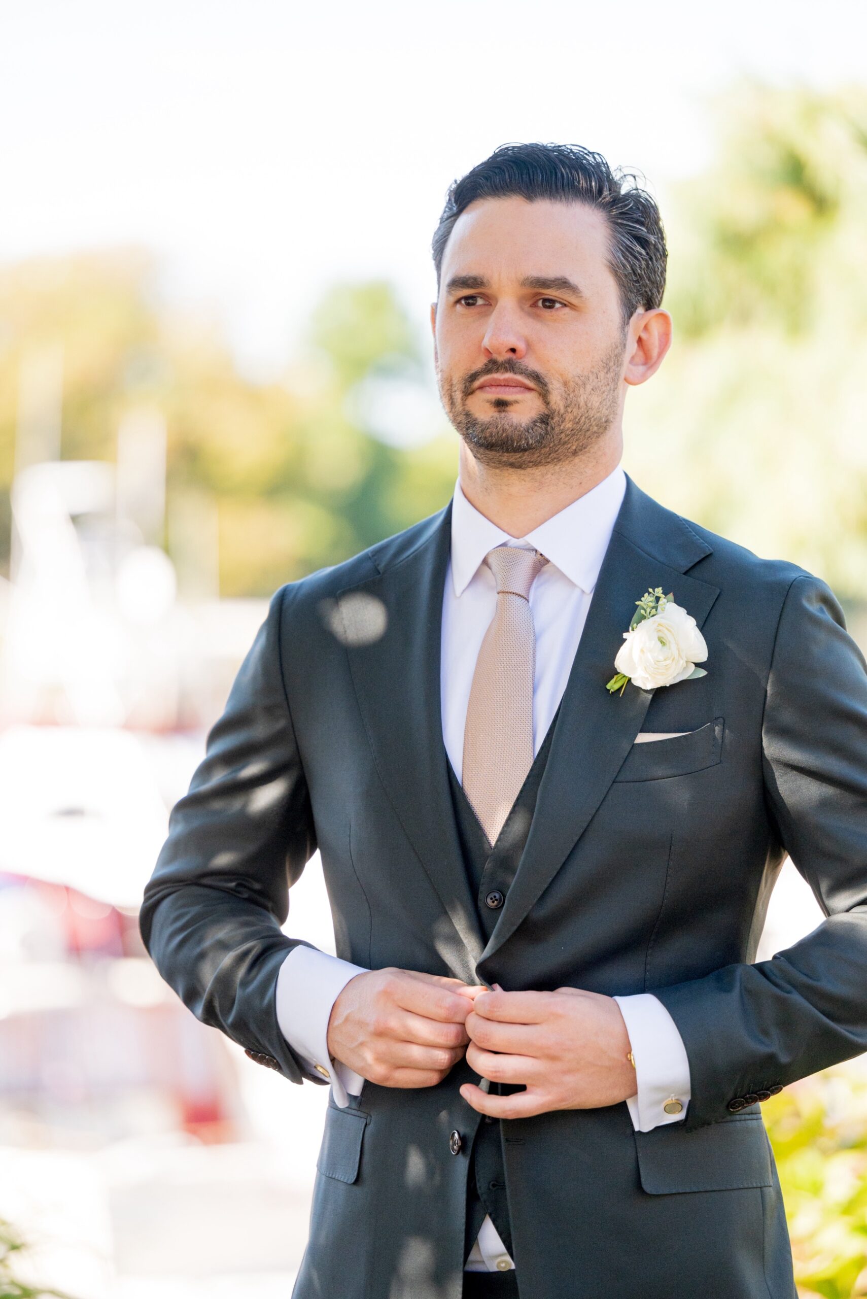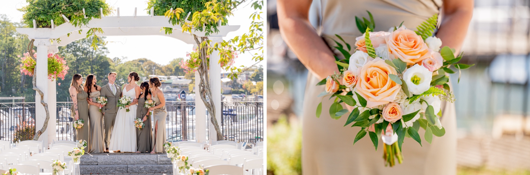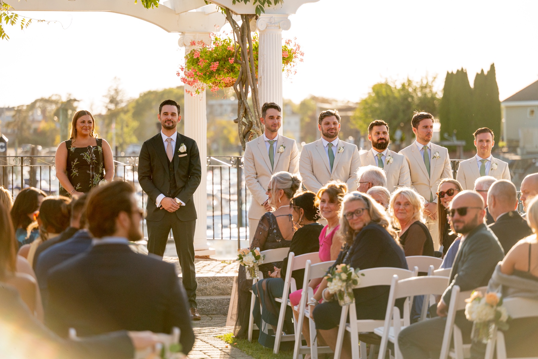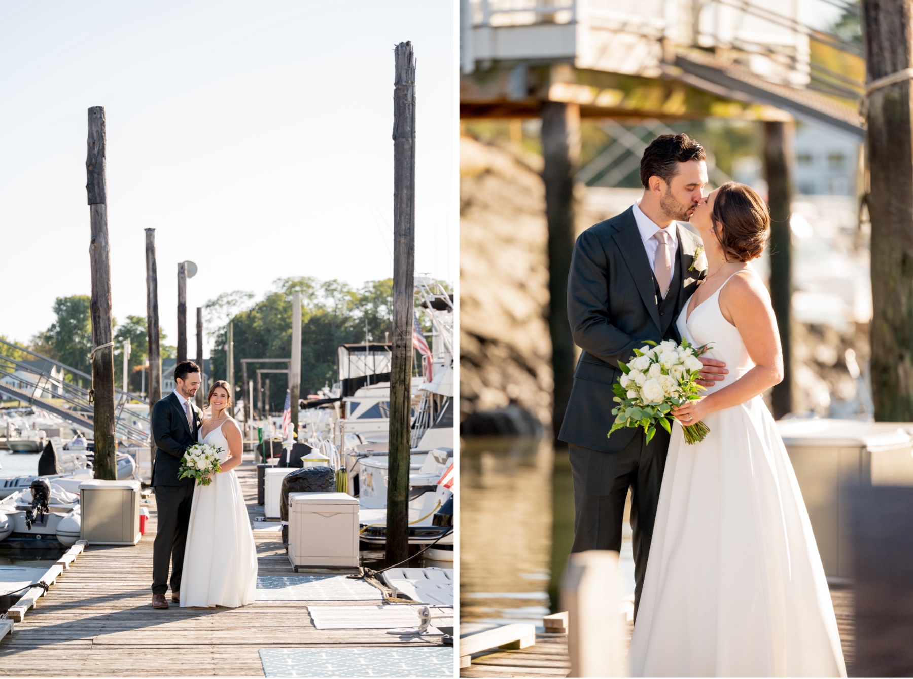 We began their first look and family photos right at the ceremony site. Then headed down to the docks at Danversport for a relaxed couples portrait session. We finished with 20 full minutes to spare! So they used this time to relax and hang out with their wedding party before being tucked away.