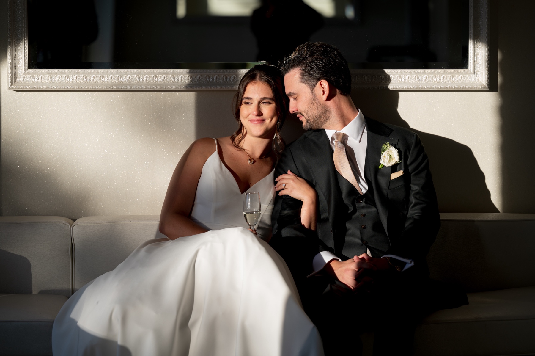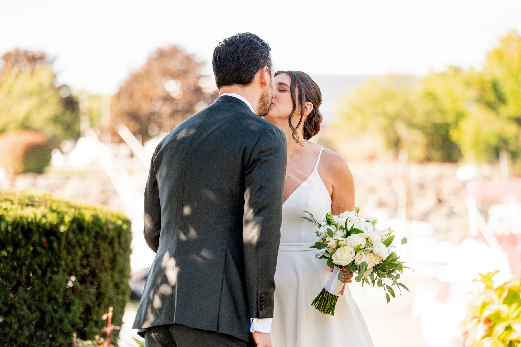 Later that evening, we stepped outside for sunset photos overlooking the harbor, just as the light softened and shimmered over the water. And before the night ended, we snuck out for one last moment. A romantic night photo on the patio of the Terrace Ballroom is always a good choice.